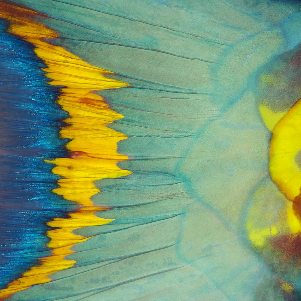 Parrotfish are found in all tropical and semi-tropical oceans of the World. This fish, with this particular colouration in the tail, is unique to the warm waters of the Atlantic Ocean and the Caribbean Sea. The only way I was able to get this shot was to wait until the sun had gone down before descending onto the reef. Only then, once the fish has started to sleep, was I able to get close enough to photograph the tailfin in close up. But if you wait too long, these fish cover themselves in a semi-opaque mucous bubble to hide their scent from predators, which would prevent a clear image.