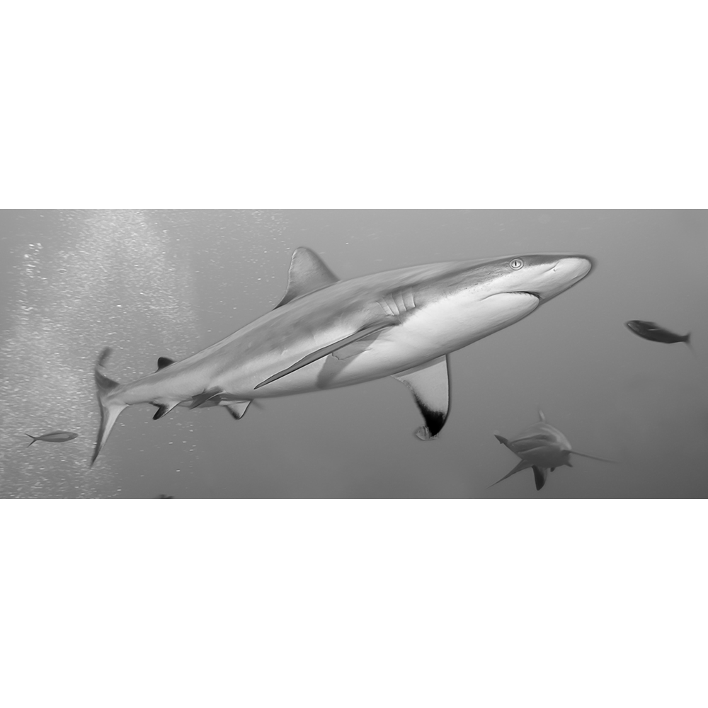 Grey reef sharks zoom around tropical reefs in our northern waters. Fast-moving currents seem to stir them into action, and these were racing around amongst the schooling fish. Fortunately they seemed oblivious to my presence and were only interested in the fish; even so, I could sense the feverish, growing excitement in their abrupt movements.