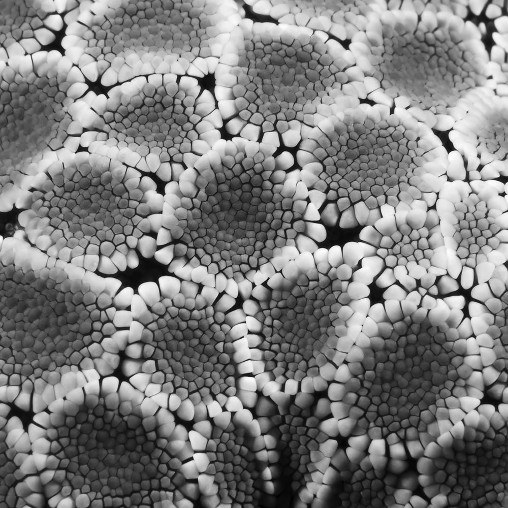 What resembles a pattern of stones or intricate mosaics is actually the back of a large plated sea star that I found at Rottnest Island. Sea stars and sea urchins are from the same scientific class of creature. Knowing this, it is easy to see how the long dangerous spines of a sea urchin have, in this instance, transformed into short blunt clumps that act more as a shield on the sea stars back. This essentially gives the creature plates of armour.
