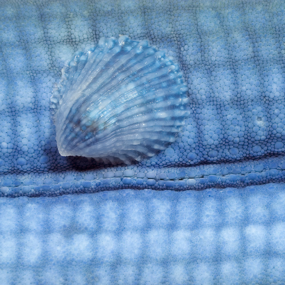 These shells always exactly match the colour of the creature on which they are living. They are smaller than the nail on your little finger. They attach tightly to the undersides of blue sea stars and it is not unusual to find up to half a dozen on one sea star. Blue sea stars can be found on reefs and sand bottoms but it was only on those on the sand that the shells were attached.