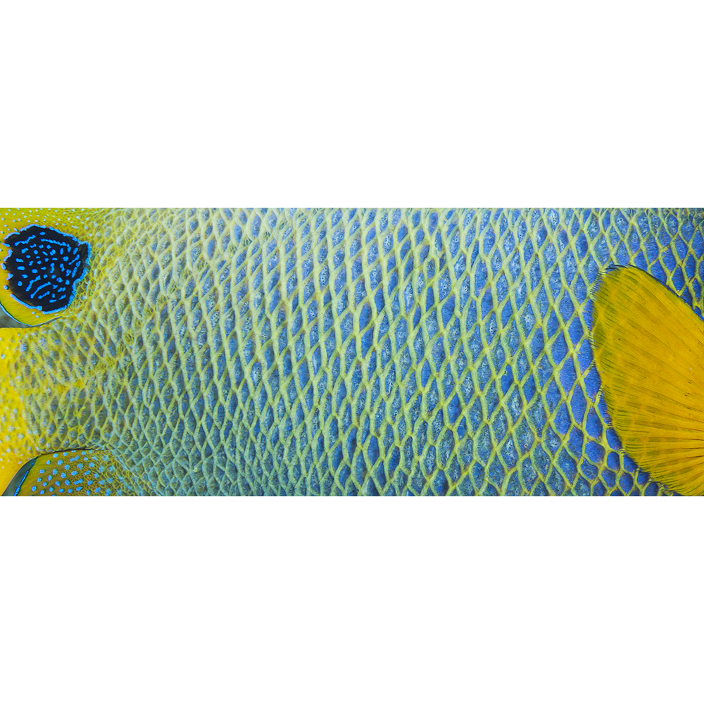 Stunningly beautiful, this blue faced angelfish seemed totally ambivalent of my presence. Using my macro lens I was able to get close enough to photograph not just the fish itself but the intricate detail of its pattern and fins. In this image I wanted to capture both the pectoral fin on the side and the blue "eye" above its tail fin at the rear. The "eye" exists to confuse predators as to which way the fish is looking as most predators tend to approach by stealth to the rear of their prey.