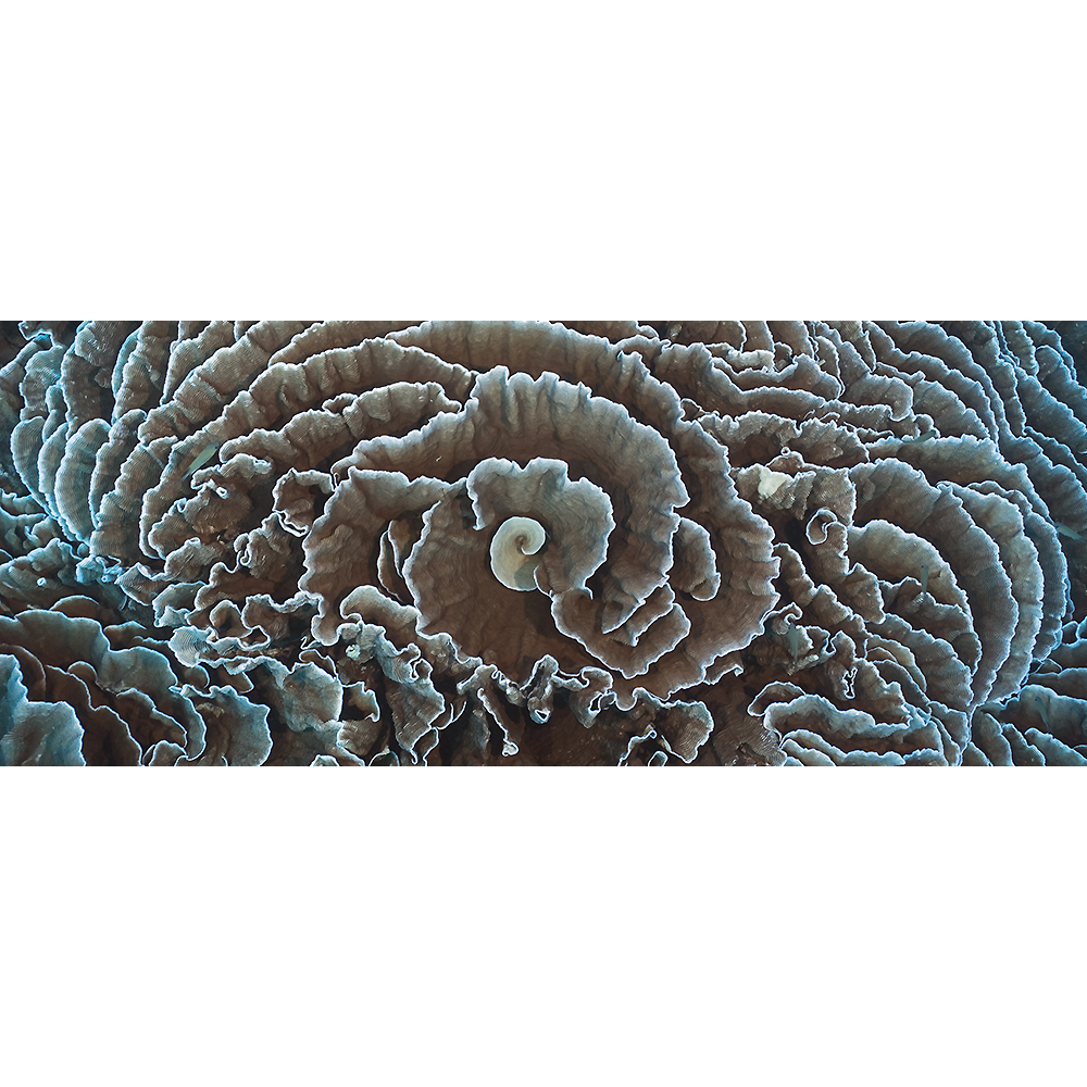 Capricorn coral can cover vast areas of reef and slope. It is made up of natural swirls and spirals. Here I am hovering 1.5m above the coral and looking straight down. The scale of the coral that is shown in the image would be 3m across and this is a mere fragment of the extent of this coral species seen on our dive.