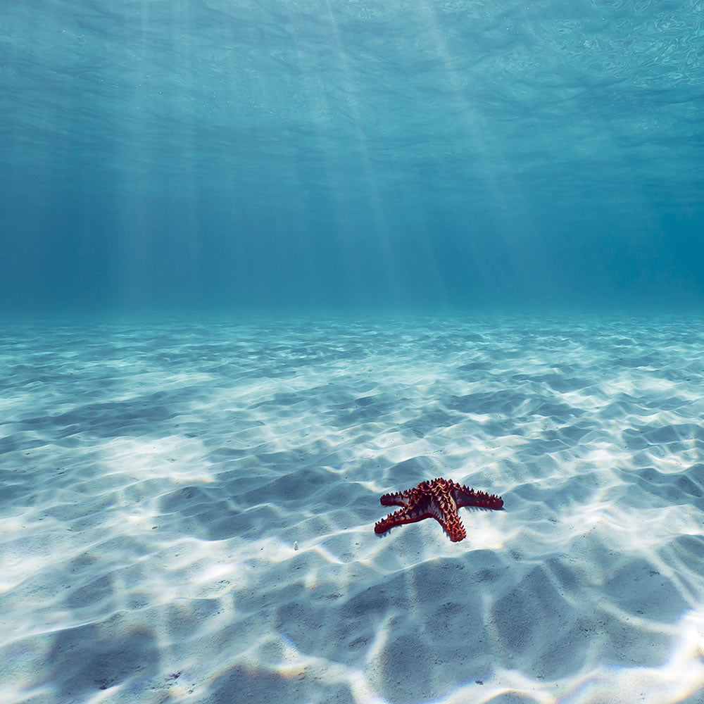 As I was exploring the protected eastern lee on the inside of Ningaloo Reef, I swam away from the corals and out over the clear white sand. Here was a world where sunbeams speared through the surface of the sea and created a mesmerizing dance of light and shadow on the seabed in front of me. My only companion, one lone seastar that moved at a snails pace across the sand.
