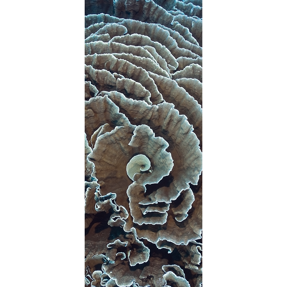 Capricorn coral can cover vast areas of reef and slope. It is made up of natural swirls and spirals. Here I am hovering 1.5m above the coral and looking straight down. The scale of the coral that is shown in the image would be 3m across and this is a mere fragment of the extent of this coral species seen on our dive.