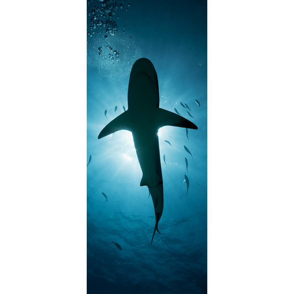 The shape of sharks seems to be an ancient memory etched into our most primordial of emotions, driving fear into our hearts. Yet sharks are magnificent animals, they have a graceful beauty within a perfect design. They are not necessarily creatures that we need to fear and during this dive I was surrounded by up to a dozen sharks, all around and above, merely curious of my presence. I was this strange visitor to their ocean domain and perhaps they were trying to understand what (or why) I was. This reef shark created a magnificent outline against the strong sun above.