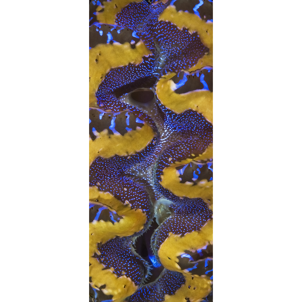 Diving along the sloping front of a tropical reef, I noticed the blandness of the hard corals was broken by the psychedelic colours of numerous giant clams. I could not believe the intensity and combination of colour within the mantle of this creature. Giant clams are found in tropical waters worldwide and locally across the top of Australia including Ningaloo Reef, Rowley Shoals and out to Christmas and Cocos Keeling Islands.
