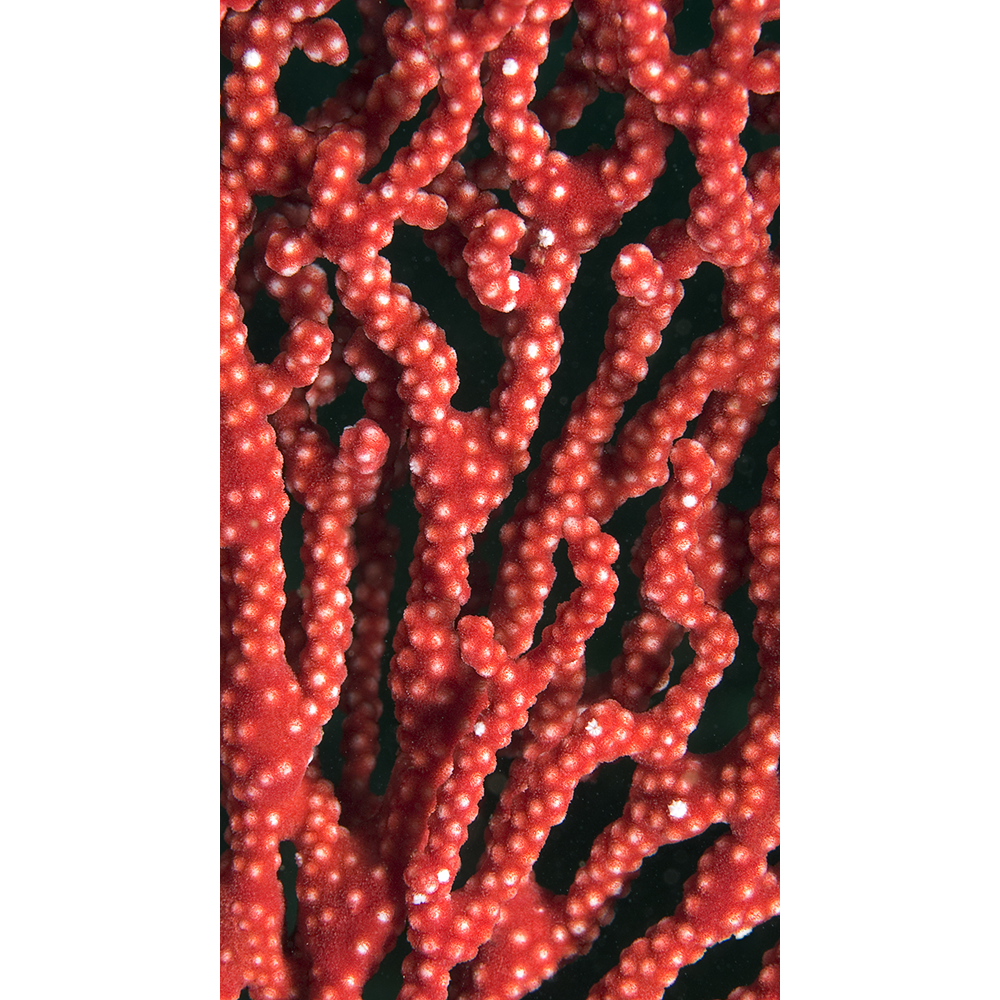 A close up detail of a red gorgonian coral with all of its polyps totally withdrawn. The amazing structures and creations are completely random, they are perfect examples of chaos theory within nature.