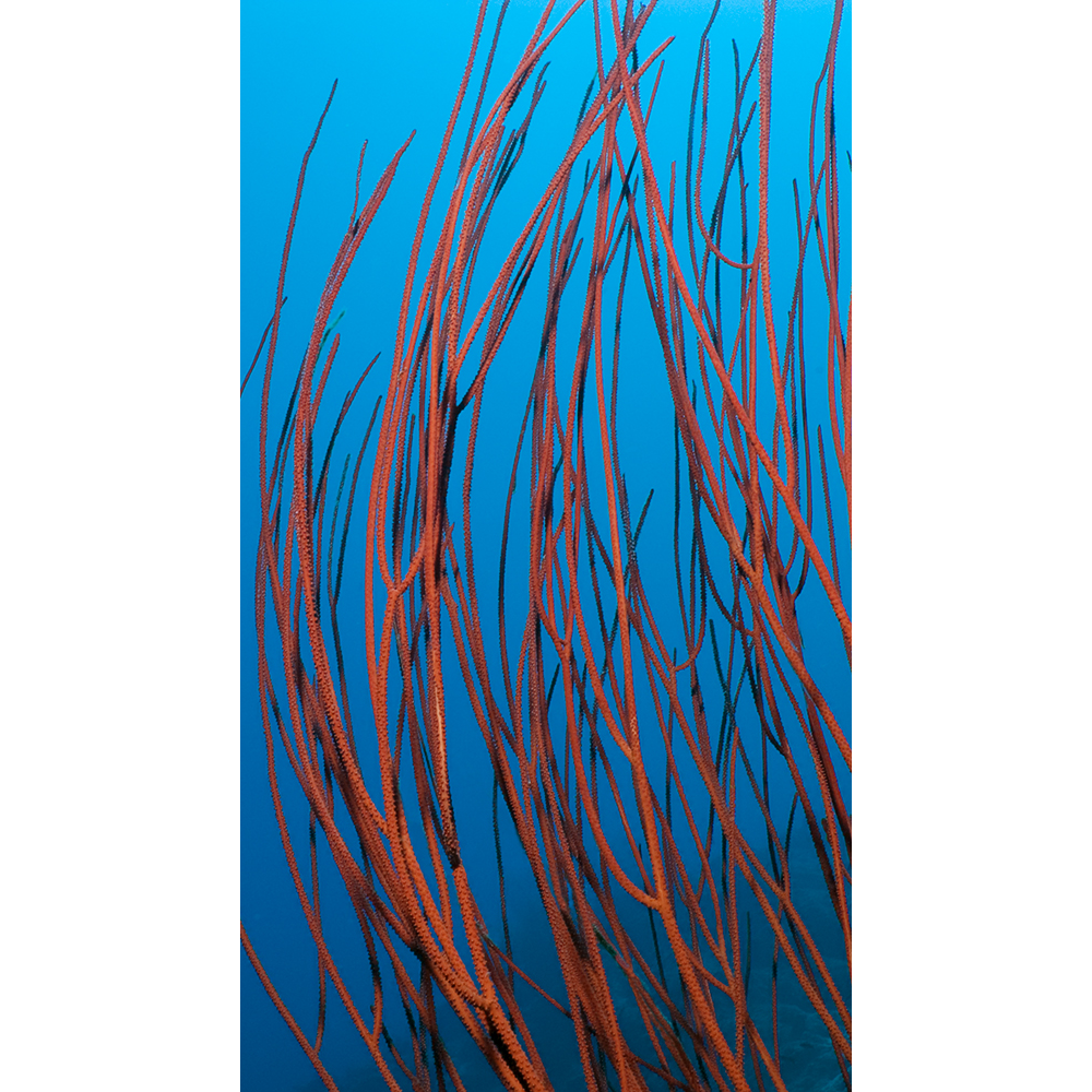 The shapes and colours of corals are many and varied and sea whips are another stunning version. Quite delicate, they usually exist in deeper waters away from wave action. Yet, like many corals and fish, the deep red colour is not apparent at depth and is only revealed by illumination with lights or flash. If you look hard, just below centre on the right hand side, you can see two tiny whip gobies, fish that live on the coral itself.